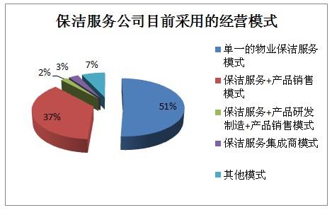 現(xiàn)階段,大部分的物業(yè)保潔公司還是采用專業(yè)化單一的保潔服務(wù)發(fā)展模式,在這物業(yè)保潔的市場(chǎng)里不斷發(fā)展壯大,逐漸形成了保潔服務(wù)高度專業(yè)化的競(jìng)爭(zhēng)優(yōu)勢(shì)。調(diào)查結(jié)果顯示:?jiǎn)我坏奈飿I(yè)保潔服務(wù)模仍被采用的企業(yè)占51%,保潔服務(wù)+產(chǎn)品銷售的發(fā)展模式占37%,是目前物業(yè)保潔服務(wù)公司的兩大經(jīng)營(yíng)模式。